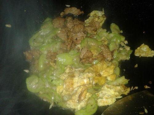 3. 下瓜翻炒:将切好的水瓜放入锅中,快速翻炒,让水瓜均匀受热。